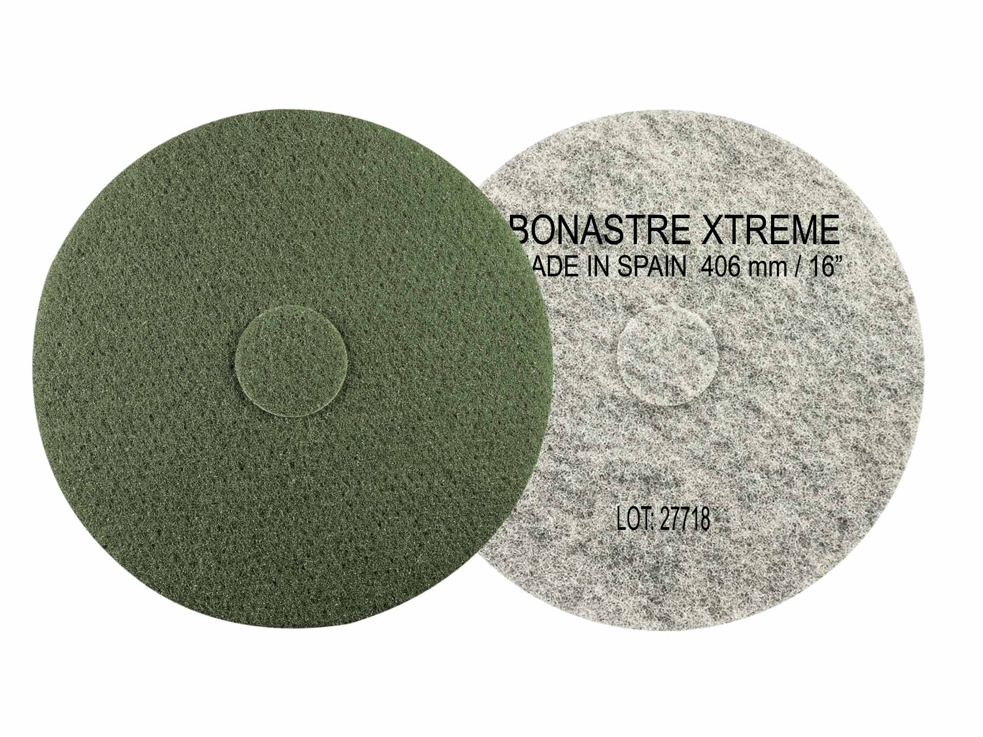 Transform your surfaces with Bonastre’s Xtreme line of pads, specially designed to renew, polish, and maintain surfaces like concrete and hydraulic tiles. Crafted with a resilient natural fiber formula, these pads are perfect for tackling extremely rough surfaces such as concrete, terrazzo, and worn calcium-based stones. The natural pad backing ensures high resistance, outperforming traditional pads and providing more square footage per pad.